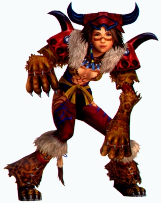 Paine looks like she's going down a fasion runway, no way does she look berserker int he slightest. Rikku looks like she's umm... nevermind. Yuna on the otherhand, as was said before, looks like she killed a buffulo, I hereby rename her Buffelkill and cast my vote in her direction-- if she can take down a buffelo with her bare hands then she deserves to be a berserker.